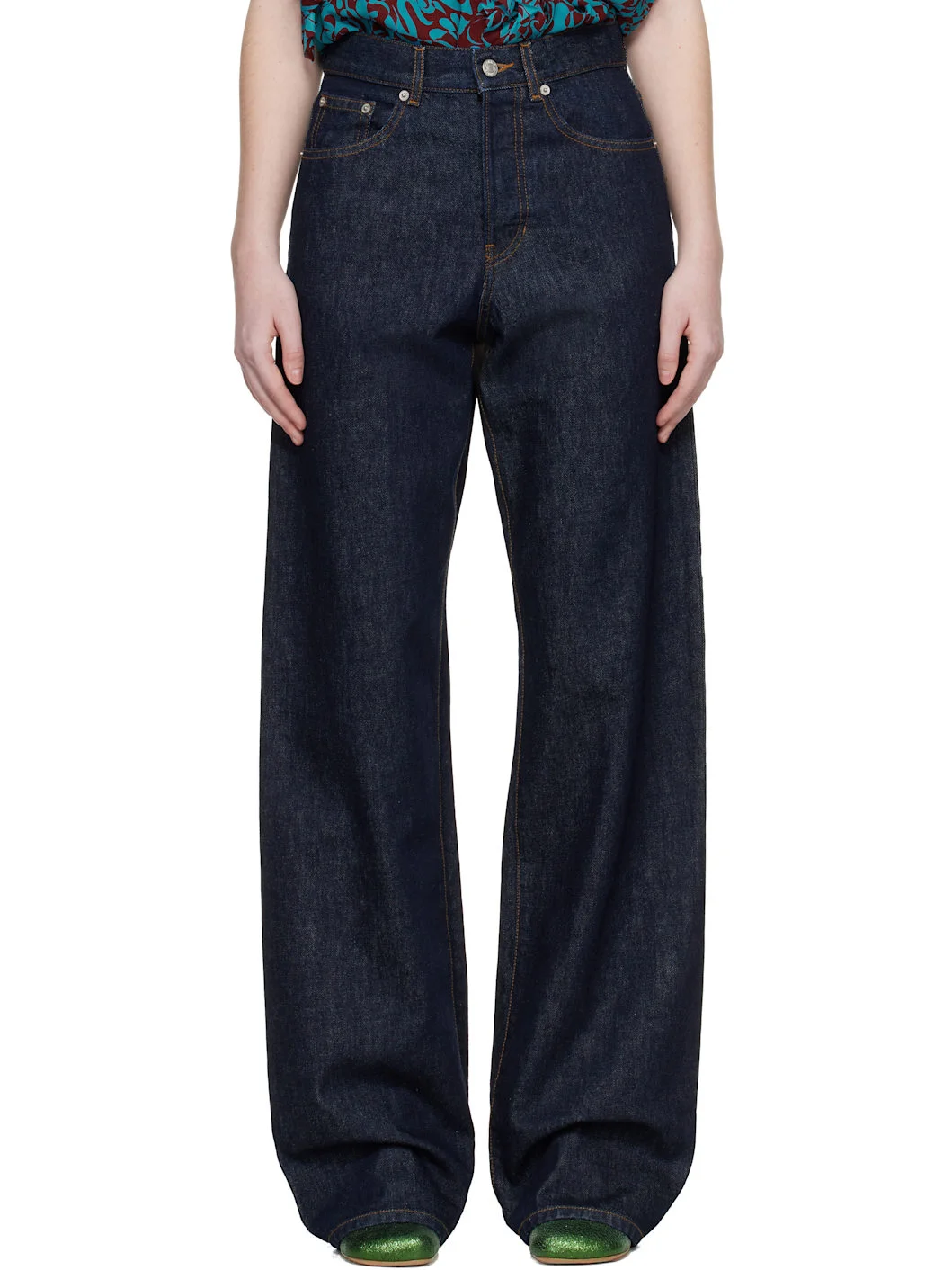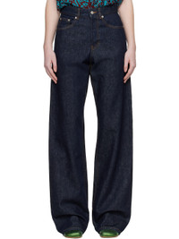 Non-stretch denim jeans. · Straight-leg · Belt loops · Five-pocket styling · Button fly · Leather logo patch at back waistband · Contrast stitching in tan Supplier color: Indigo 100% cotton. Made in Tunisia 261358F069003