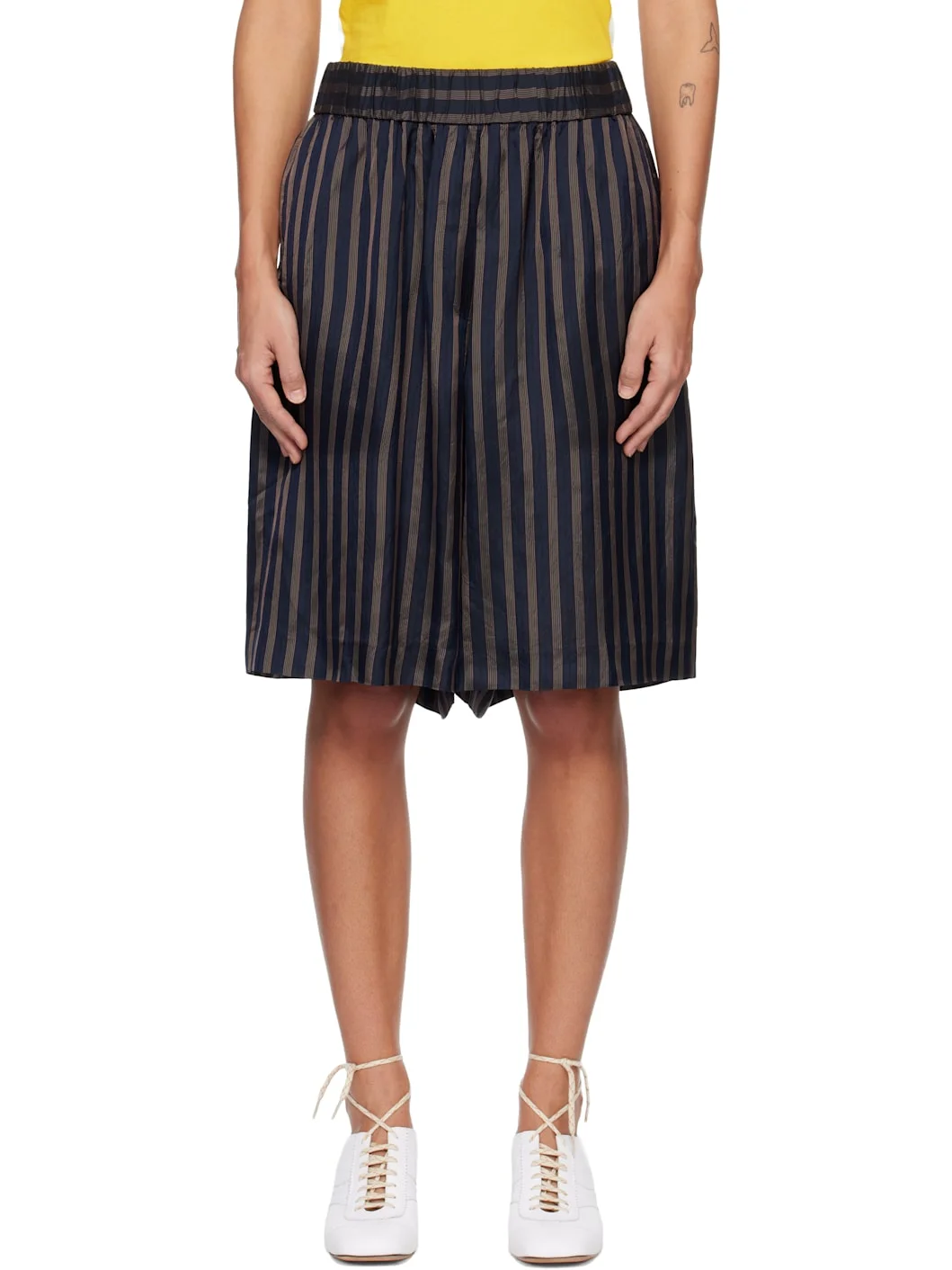 Cupro satin shorts. · Stripes throughout · Drawstring at elasticized waistband · Three-pocket styling Supplier color: Navy 100% cupro. Made in Romania 261358F088012