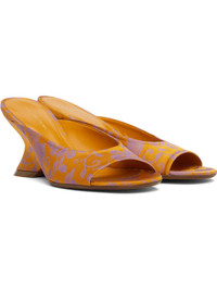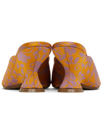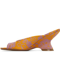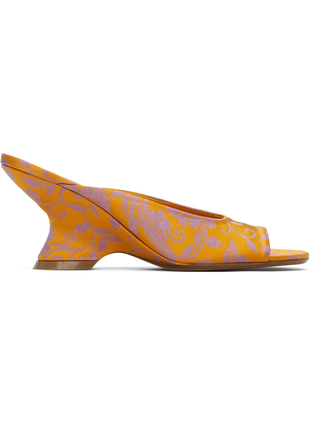 Damask slip-on heeled sandals in orange. · Jacquard floral pattern throughout · Open toe · Logo stamp at padded leather footbed · Covered wedge heel with rubber injection · Polished leather sole · Heel: H2.75" Supplier color: Mandarin Upper: textile. Sole: leather, rubber. Made in Italy 251358F125022