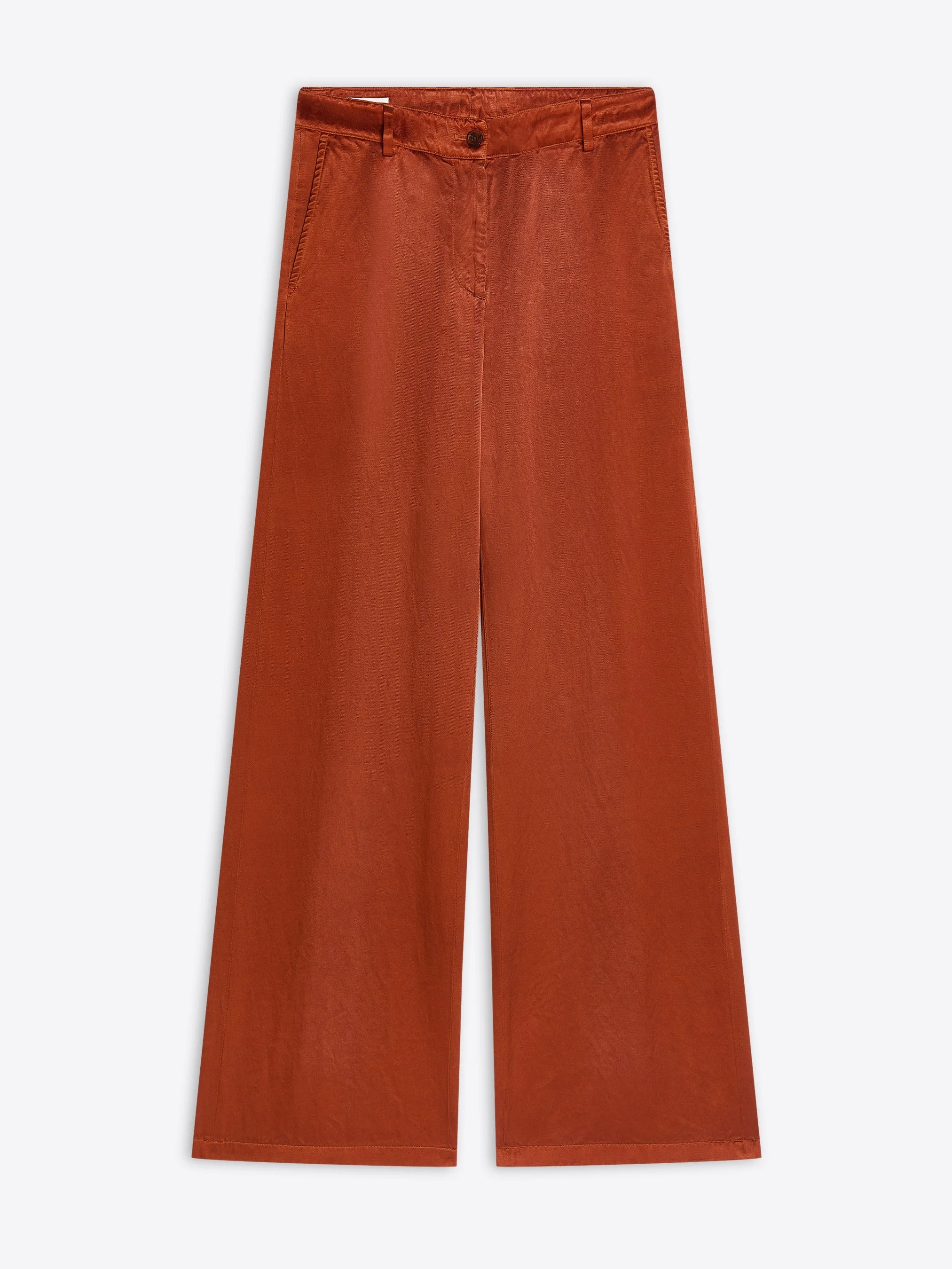 Regular fit straight leg pants in overdyed cupro cotton. DETAILS - 60% Cupro, 40% Cotton. - Garment dyed. - Regular fit. Straight leg. Side slit pockets and back welt pockets. Belt loops. Front zip and hook closure. - Ref: 252-010901-2265 SIZE AND FIT Model is 178 cm / 70 inches and wears size 36.