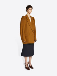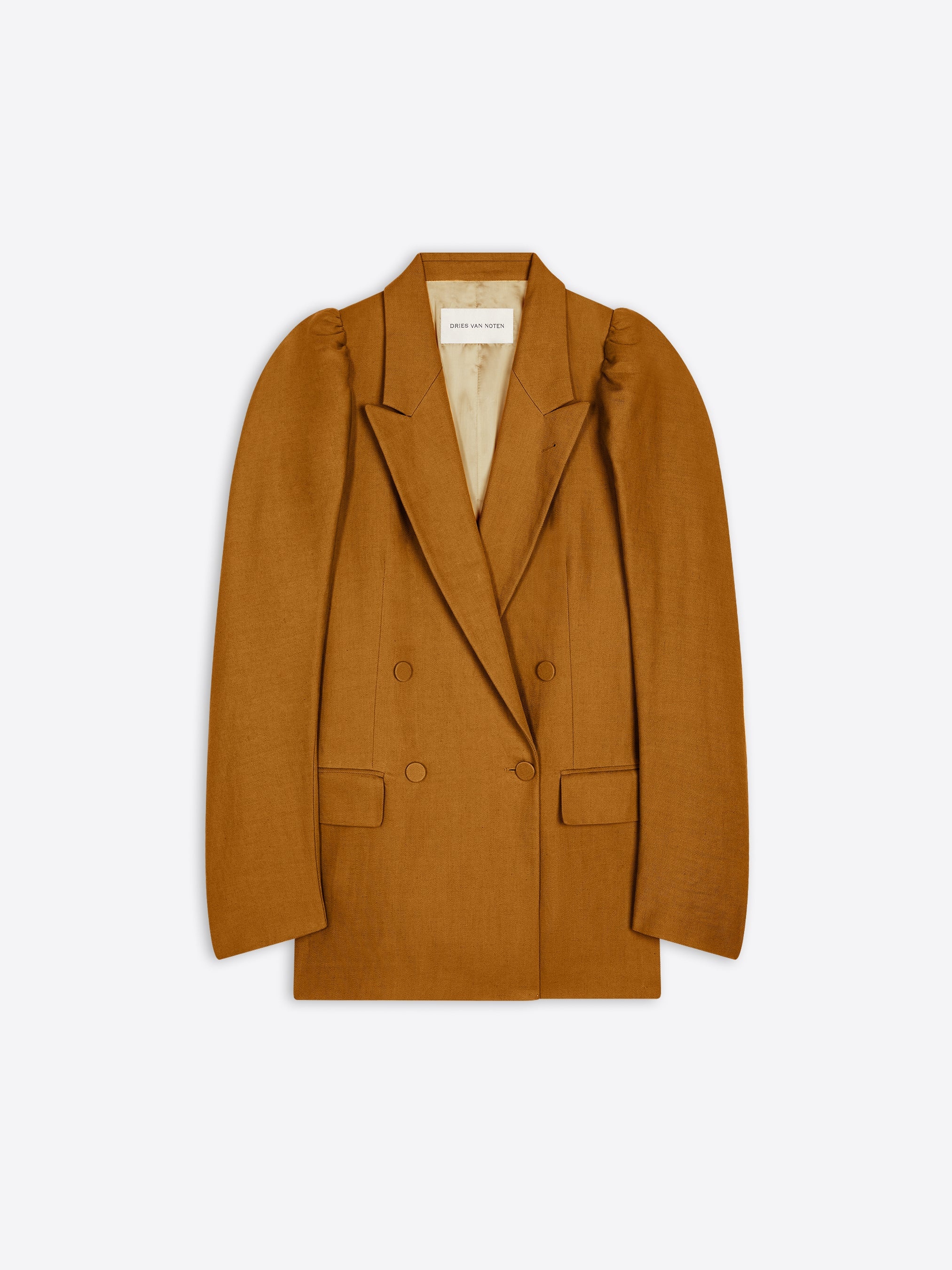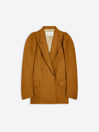 Oversized double-breasted blazer in washed cotton linen gabardine, with draped back and gathered shoulders. DETAILS - 72% Cotton, 28% Linen. - Overzised fit. Peak lapel. Gathered shoulders. Draped back. Long sleeves. Double-breasted. Two front flap pockets. Front button closure. - Ref: 242-010412-9245 SIZE AND FIT Model is 179 cm / 70.5 inches and wears size M.