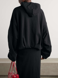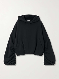 EDITORS'NOTES Dries Van Noten's 'Hannett' hoodie is gathered along the sleeves and hem to give it a voluminous shape. It's made from cotton-jersey that feels particularly plush. SIZE & FIT Model measurements: - Fits true to size, take your normal size - Designed for a relaxed fit - Dropped shoulder seam - Mid-weight, slightly stretchy fabric - Model is 177cm/ 5'10" and is wearing a size Small - Bust: 80cm/ 31.5" - Waist: 60cm/ 23.5" - Hip: 89cm/ 35" DETAILS & CARE - Black cotton-jersey - Slips on - 100% cotton - Dry clean