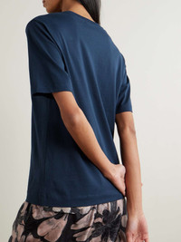EDITORS'NOTES Dries Van Noten's cotton-jersey T-shirt has a relaxed, oversized cut, leaning into the label's typically laid-back vibe. It's an easy way to temper the psychedelic patterns from the Spring '25 collection. SIZE & FIT - Intended to be oversized; we recommend sizing down if you prefer a closer fit - Designed for a slightly loose fit - Mid-weight, stretchy fabric - S/M/L sizing DETAILS & CARE - Navy cotton-jersey - Slips on - 100% cotton - Machine wash