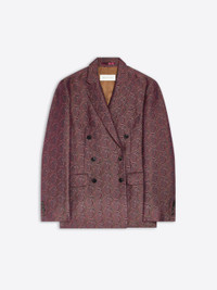 Oversized fit double-breasted blazer with accentuated shoulders, in jacquard with Abstract Swirl motif. DETAILS - 49% Polyester, 33% Viscose, 18% Wool. Lining: 100% Viscose. - Abstract Swirl jacquard. - Oversized fit. Double-breasted. Buttoned cuffs. - Ref: 252-010432-2354 SIZE AND FIT Model is 178 cm / 70 inches and wears size 36.