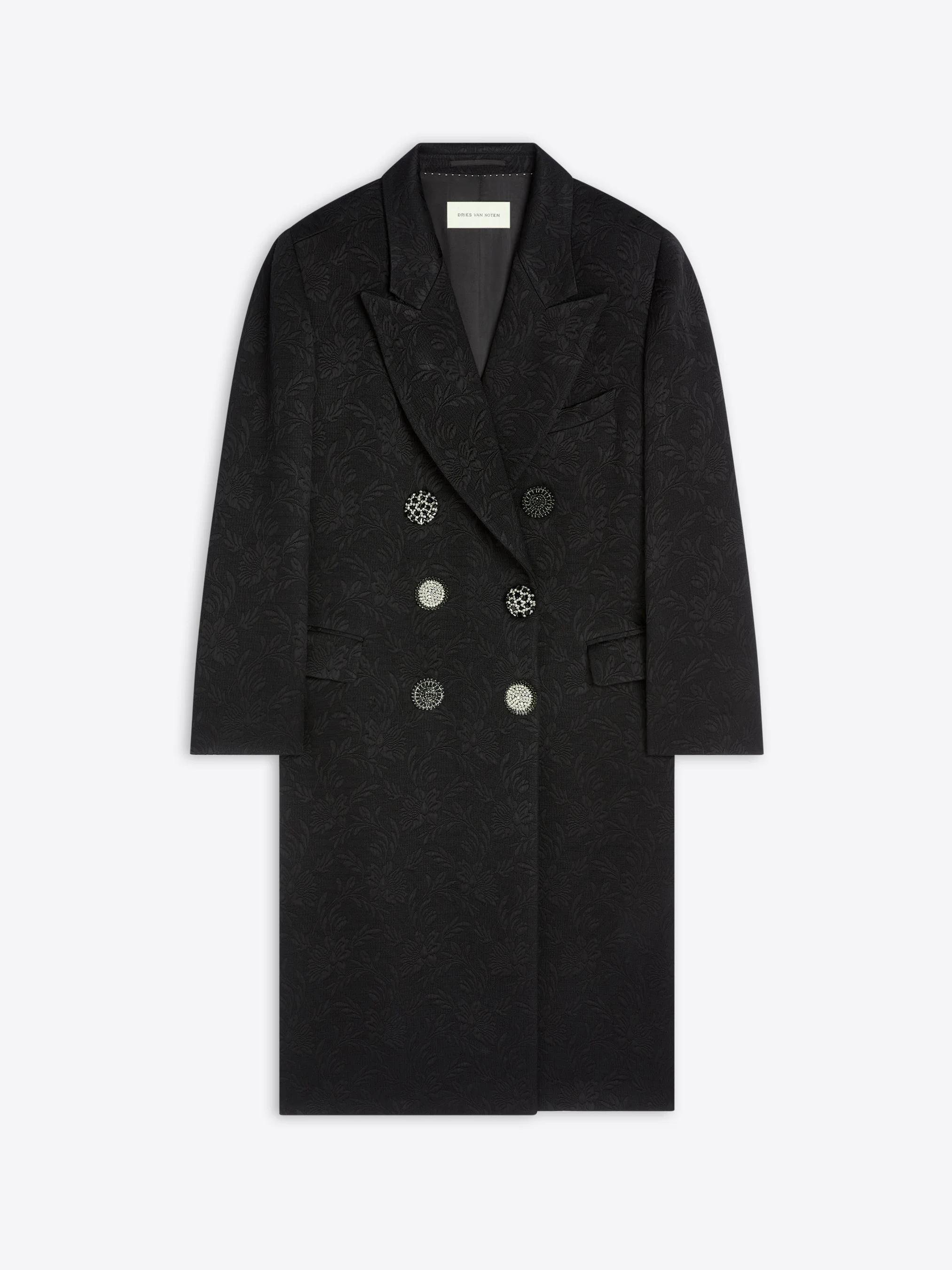 Oversized double-breasted coat in matelasse jacquard, with jewel buttons. DETAILS - 64% Viscose, 36% Cotton. - Matelasse jacquard. - Oversized fit. Double breasted. Side flap pockets and chest welt pocket. Front button closure. - Ref: 261-010283-3265 SIZE AND FIT Model is 178 cm / 70 inches and wears size M.