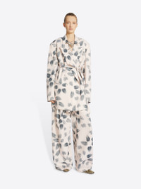 Oversized belted blazer in satin viscose cotton blend, with all-over Tulip Petals print. DETAILS - 55% Viscose, 45% Cotton. Lining: 100% Viscose. - Tulip Petals all-over print. - Oversized fit. Peak lapel. Lined. Double-breasted. Side slit pockets. Buttoned cuffs. Belted. Front fabric-covered button closure. - Ref: 251-070424-1083 SIZE AND FIT Model is 179 cm / 70.5 inches and wears size L.