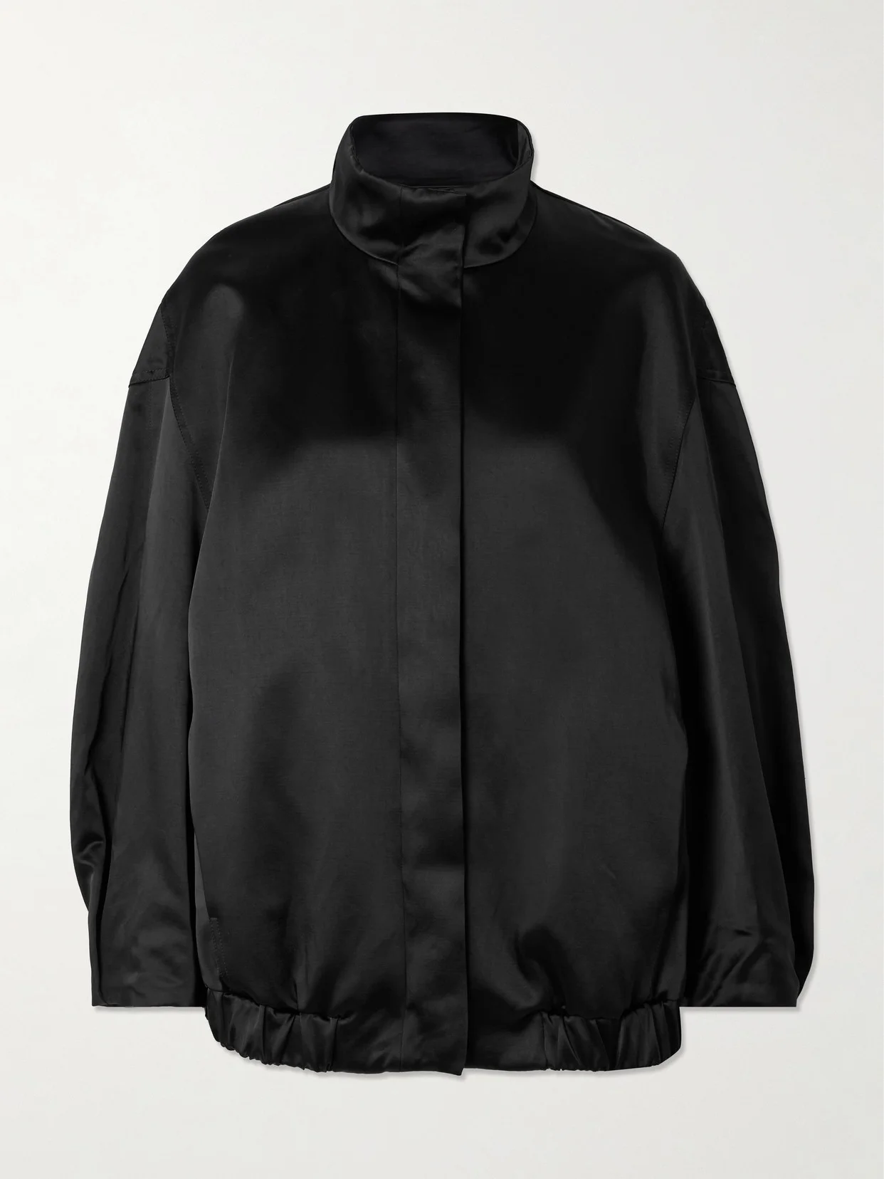 Dries Van Noten reimagines the bomber jacket with a party-inspired spin. Made from lustrous cotton-blend satin, it has an oversized shape and a contemporary turtleneck. The elasticated hem adds to the relaxed fit.