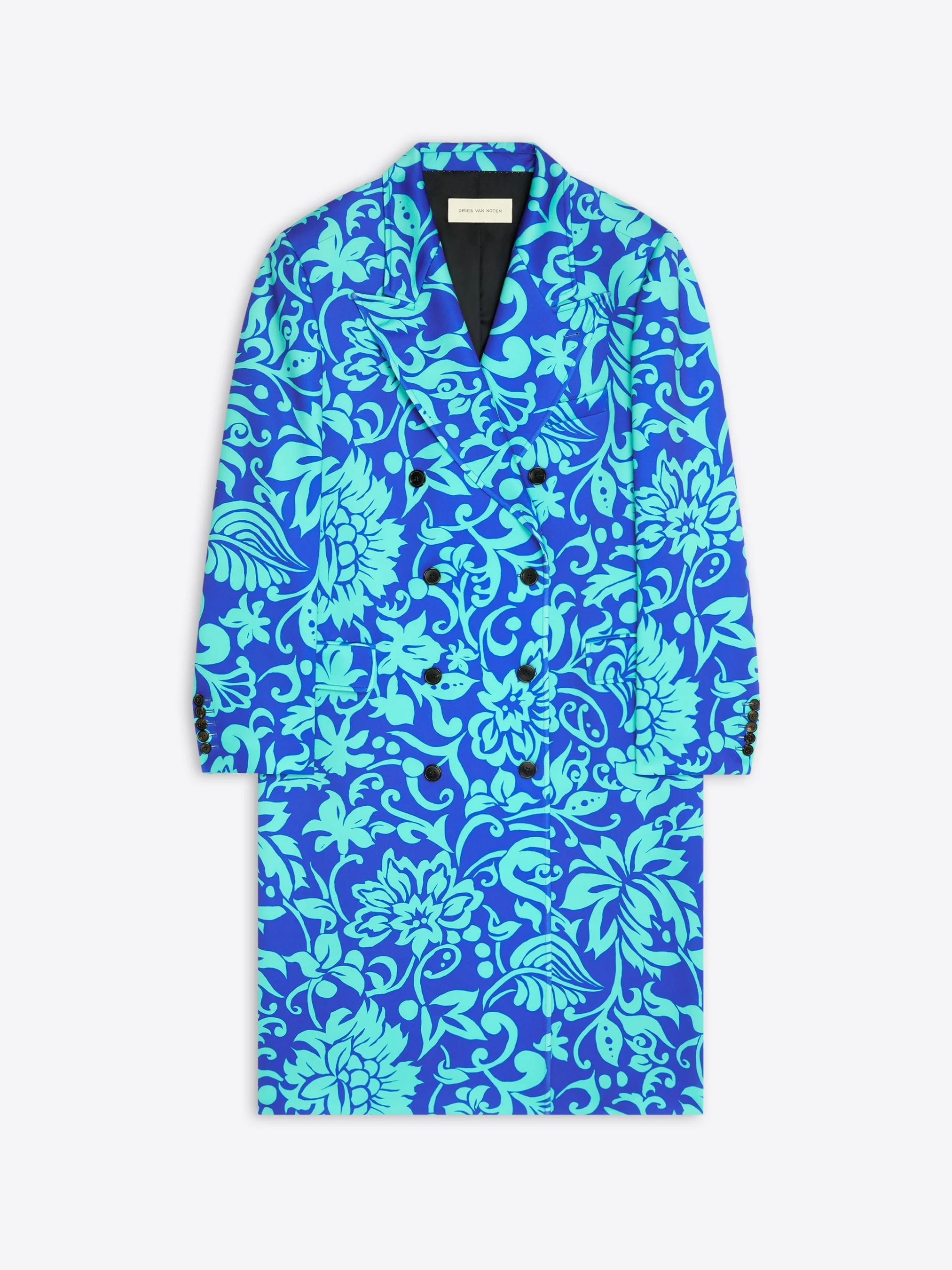 Oversized double-breasted coat in scuba fabric, with historical Hawaiian print. DETAILS - 85% Polyester 15% Elastane. - Historical Hawaiian print. - Oversized fit. Double breasted. Side flap pockets and chest welt pocket. Front button closure. - Ref: 261-010273-3096 SIZE AND FIT Model is 178 cm / 70 inches and wears size M.