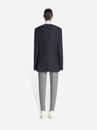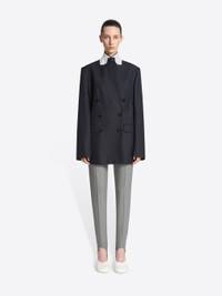Oversized fit double-breasted blazer with accentuated shoulders, in herringbone worsted wool. DETAILS - 100% Wool. Lining: 100% Viscose. - Oversized fit. Double-breasted. Front flap pockets and welt pocket at chest. Buttoned cuffs. Double vent. Front button closure. - Ref: 252-010432-2193 SIZE AND FIT Model is 178 cm / 70 inches and wears size 36.
