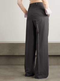 EDITORS'NOTES Dries Van Noten's pants are tailored from wool-blend twill that's blended with a touch of paper yarn for structure. They sit high on the waist and fall to wide legs with crisp pleats at the top. SIZE & FIT Model measurements: - Fits true to size, however those who are between sizes should take the smaller size - High-rise, designed for a wide-leg fit - Particularly long in the length - Mid-weight, non-stretchy fabric - Model is 175cm/ 5'9" and is wearing a FR 36 - Bust: 81cm/ 32" - Waist: 64cm/ 25" - Hip: 89cm/ 35" DETAILS & CARE - Gray wool-blend twill - Concealed hook, button and zip fastening at front - 63% wool, 23% paper yarn, 14% polyamide; buttons: 100% horn (Buffalo) - Dry clean
