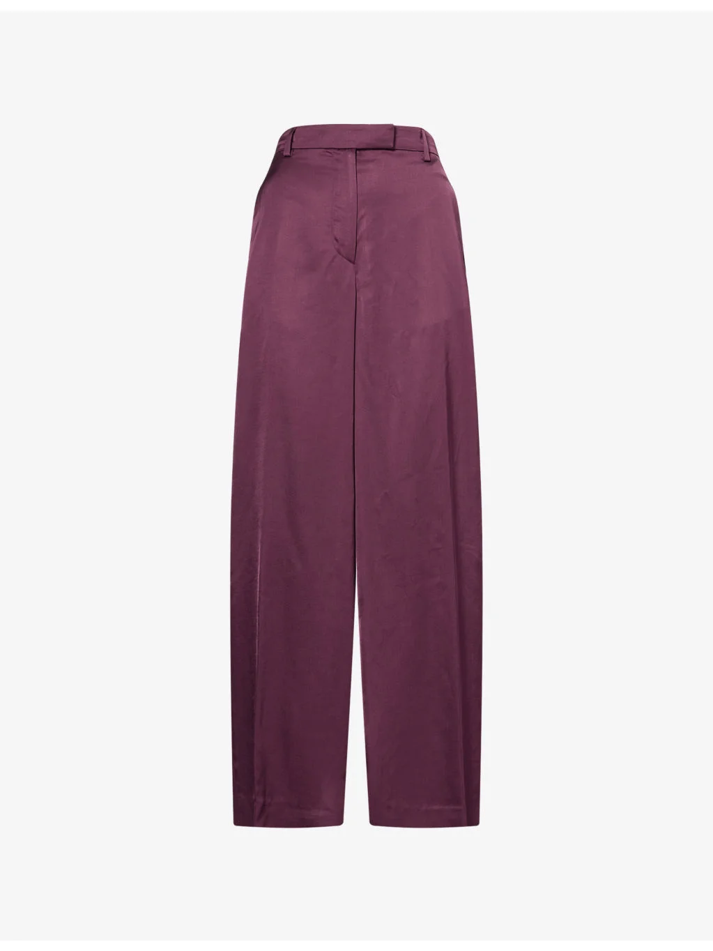 PRODUCT DETAILS - Dries Van Noten satin trousers - 100% viscose - Concealed button, hook-and-eye and zip-fly fastening at front - Regular fit, high-rise, wide leg, structured waistband with belt loops, two side slip pockets, two rear welt pockets, pressed creases at leg, satin finish - Dry clean - Made in Hungary - True to size - Size UK 8: rise 14in / 36cm, inside leg 32in / 82cm, leg opening 29in / 74cm - Model is 5ft 10in/1.78m and wears a size UK 8 - Lightweight, non-stretch Ref: R04602598