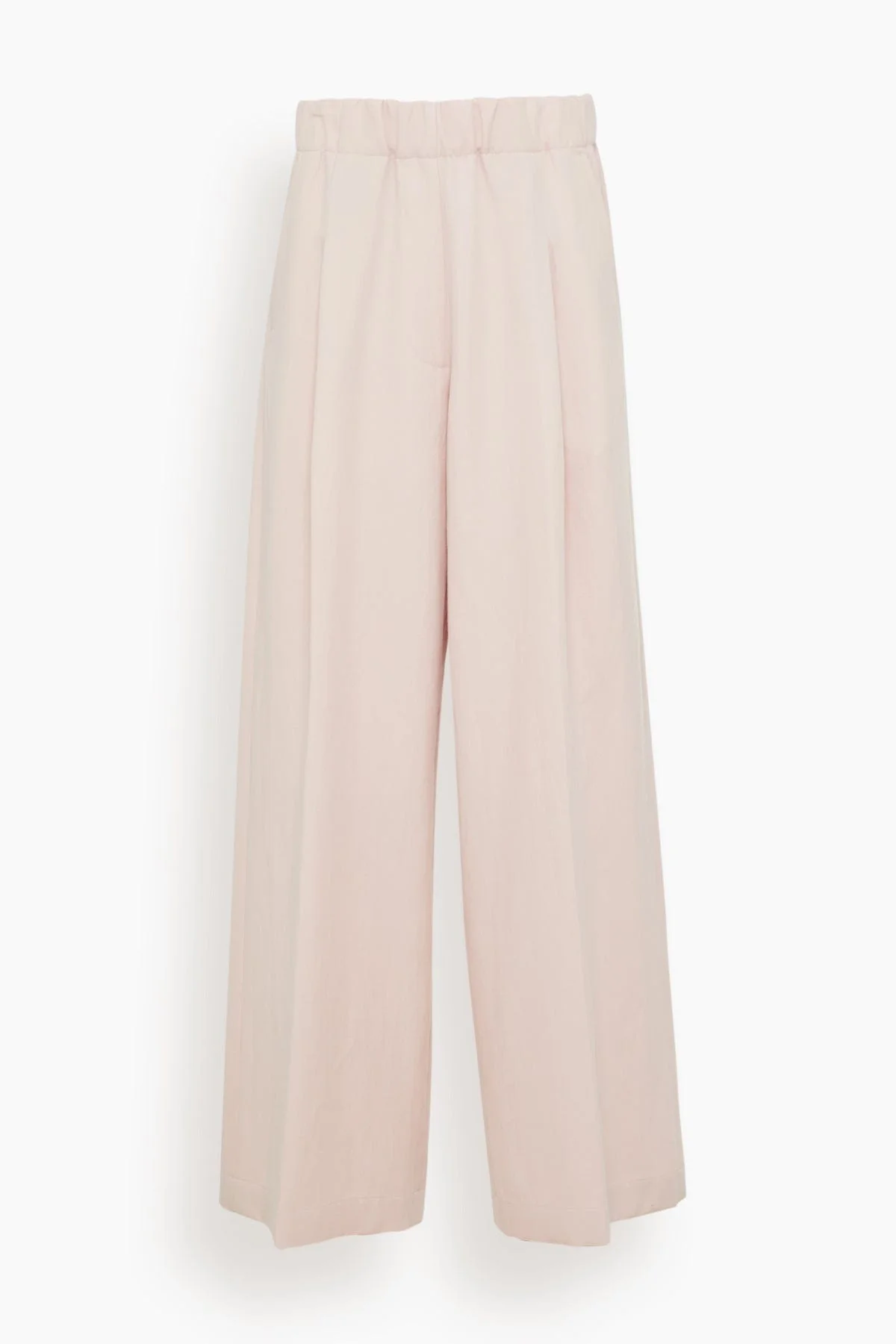 The Dries Van Noten Pila Pant in Light Pink is a wide leg elasticated pant in cotton poplin. FIT DESCRIPTION MODEL MEASUREMENTS - Fits true to size, take your normal size - 100% Cotton. - Loose fit. - High rise. - Wide leg. - Pleated. - Back patch pockets and side slit pockets. - Elasticated waistband. - Emma is wearing a size XS - Bust: 32” - Waist: 25” - Hips: 34” - Height: 5’7”