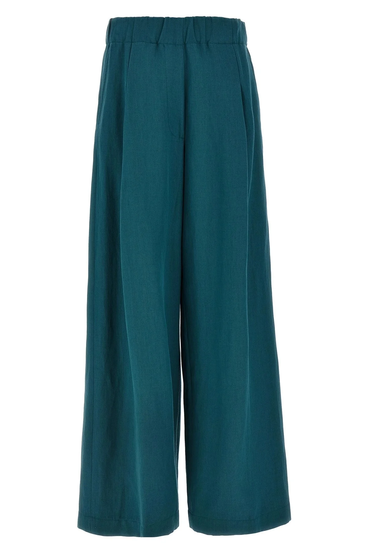 cod. 2510109091527508 'Pila' wool blend pants, loose leg, elastic waistband with drawstring, pleats, pockets. Color: Green Size & Fit: True to size fit Composition: 63% wool 23% pi 14% polyamide Made in: Tunisia