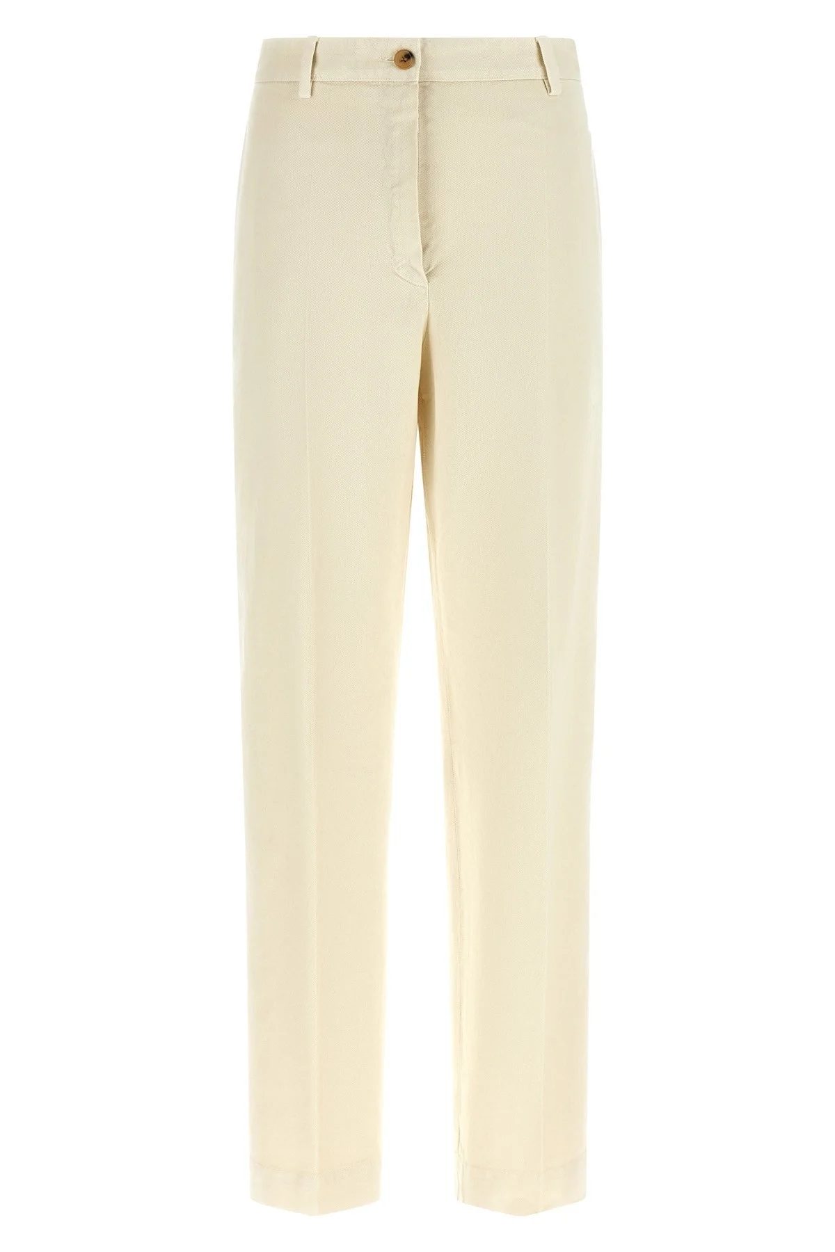 cod. 26101098233005 'Pilar' cotton canvas trousers, stretched pleat, tapered leg, zip and front horn button closure, front French pockets, back welt pockets. Color: Beige Size & Fit: true to size fit - FRENCH size Composition: 100% cotton Made in: Morocco