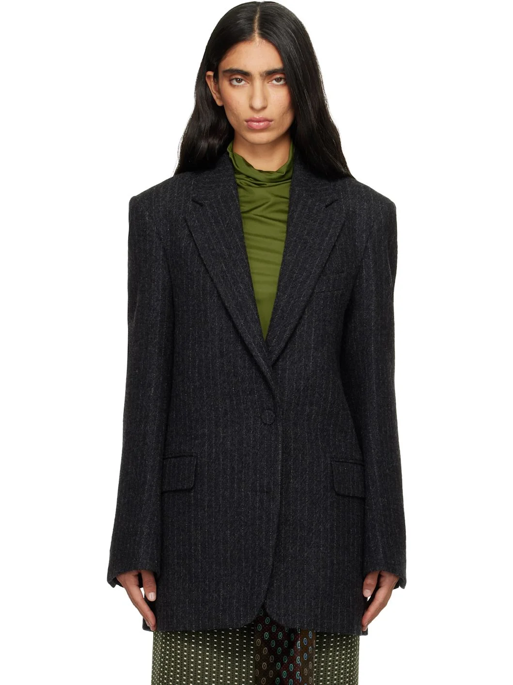 Wool melton blazer. · Notched lapel · Button closure · Welt pocket at chest · Flap pockets at waist · Padded shoulders · Vent at cuffs · Twin vents at back hem · Full satin lining Supplier color: Dark grey Body: 100% wool. Lining: 100% viscose. Made in Morocco 252358F057002