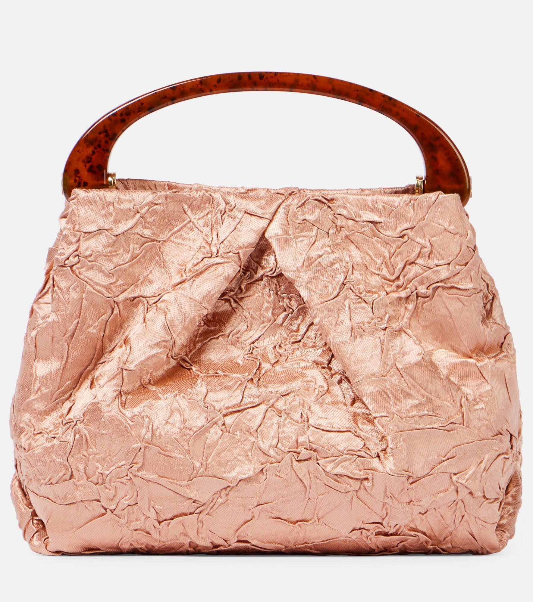 Equipped with a top handle, the Dries Van Noten Crisp Mini tote bag is made in Italy from a folded, crushed plisse. The design features a detachable strap, an inner zipped pocket, and a top magnetic snap closure. Product Details - Material: fabric - Lining: fabric - Made in India - Designer color name: Peach - Item color: pink - Top handle, Detachable, adjustable shoulder strap - Hardware color: gold - Internal details: internal slot pocket - Closure: magnetic fastening - Item number: P01018948 Size & Fit - Height 15cm-6" - Width 21cm-8.5" - Max. depth 6cm-2.5" - Length of handle 22cm-8.5" - Adjustable shoulder strap - Min. length shoulder strap 108cm-42.5" - Max. length shoulder strap 115cm-45.5"