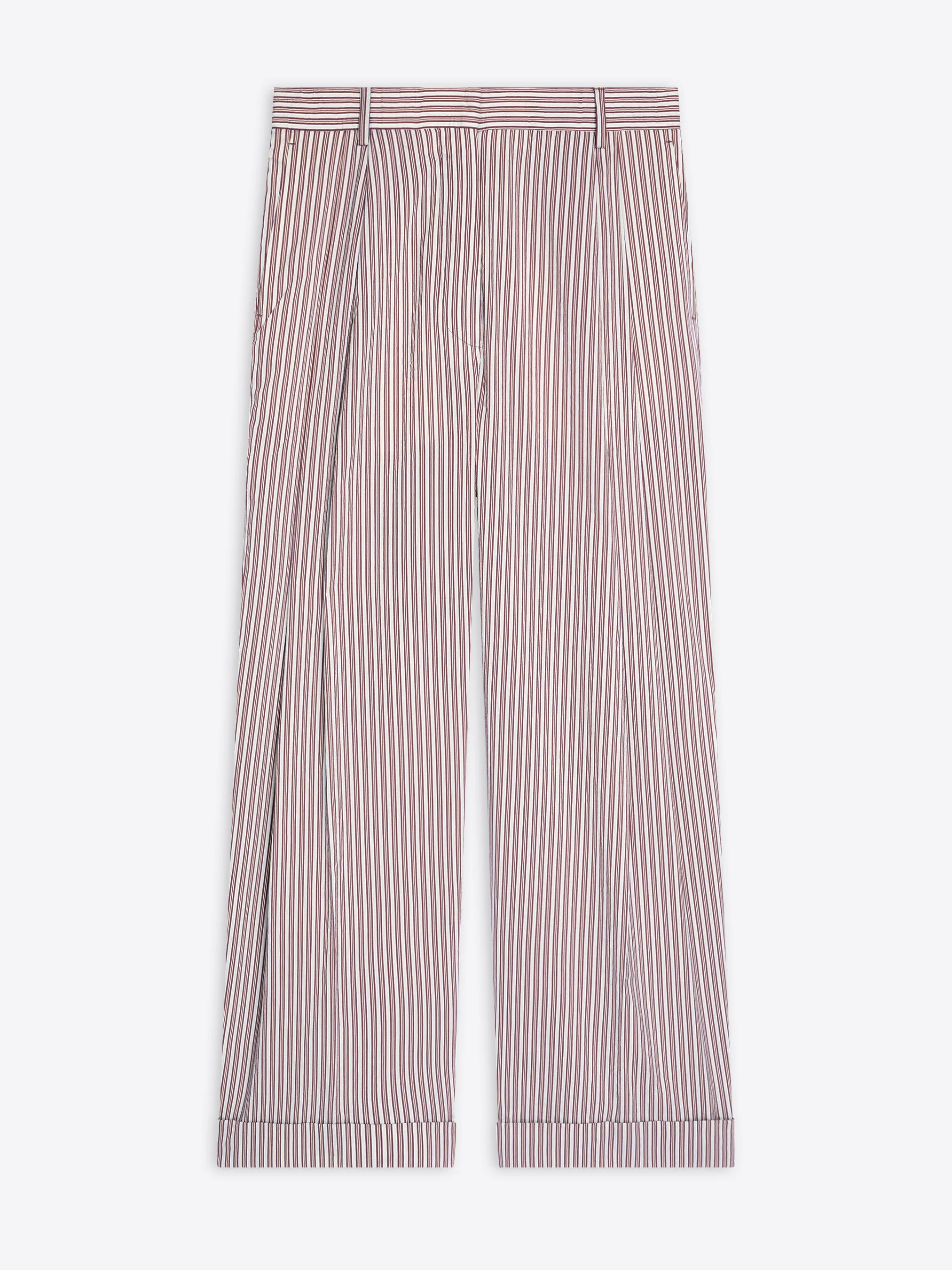 High waisted pleated pants with cuffs, in washed striped cotton silk. DETAILS - 80% Cotton, 20% Silk. Lining: 100% Cotton. - Regular fit. High rise. Wide leg with cuff. Pleated. Back patch pockets. Belt loops. Front zip closure. - Ref: 261-010920-3132 SIZE AND FIT Model is 178 cm / 70 inches and wears size 36.