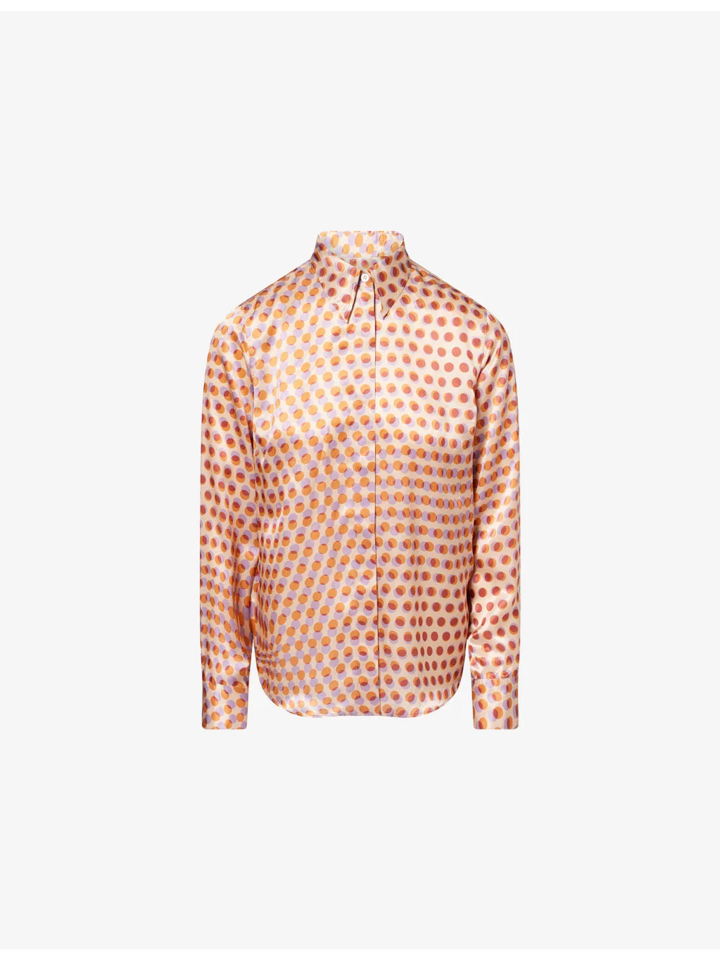 PRODUCT DETAILS - Dries Van Noten silk shirt - 100% silk - Button fastening - Regular fit, classic collar, long sleeves, buttoned cuffs, all-over polkadot print, curved hem - Dry clean - Made in Hungary - True to size - Model is 5ft 10in/1.78m and wears a size UK 8 - Lightweight, non-stretch Ref: R04602572