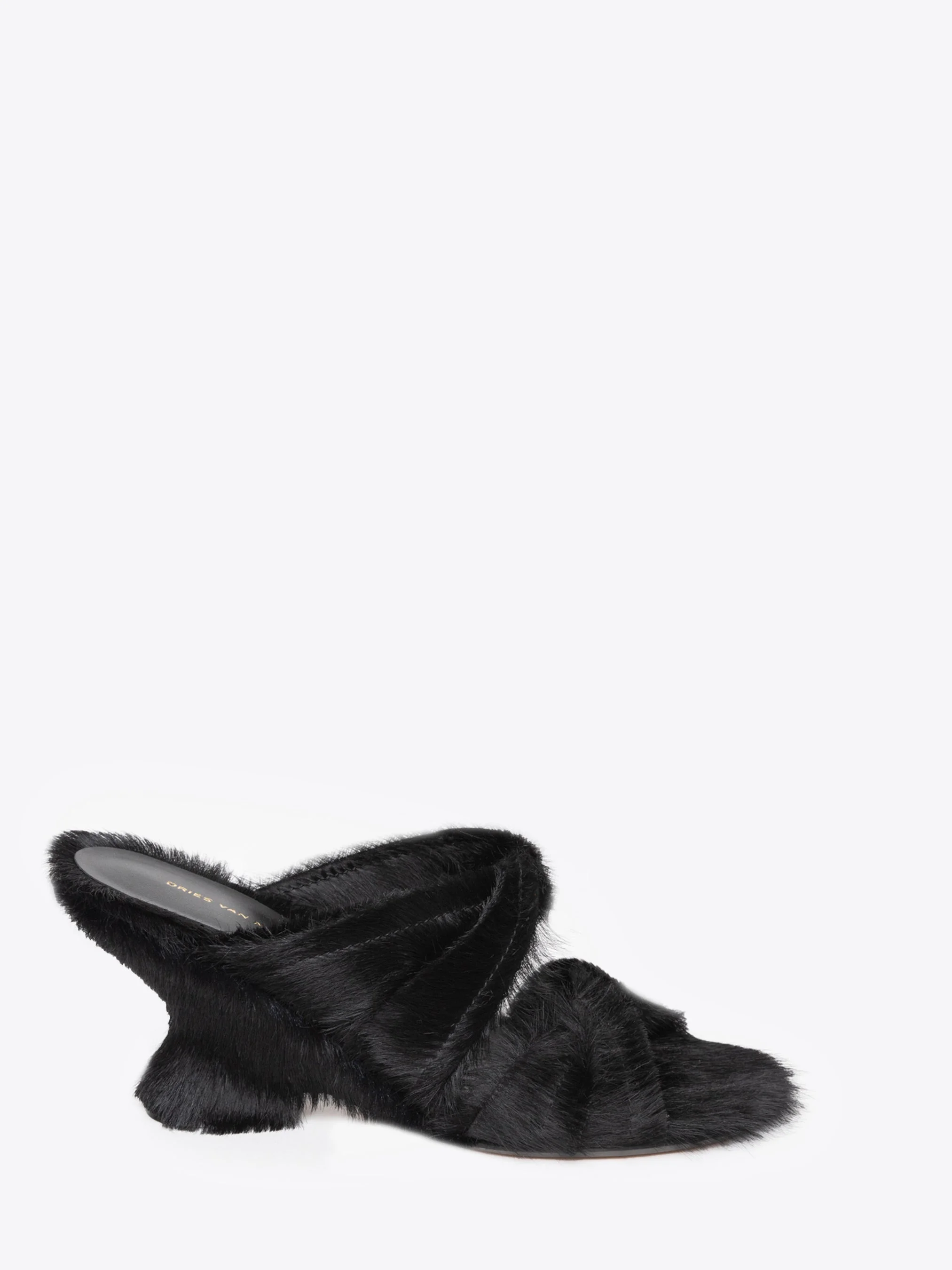 Heeled open-toe mules in leather and ponyhair, with curved wedge heel. DETAILS - 100% Leather. - Open toes. Wedge heels. Slip-on. - Comes with dust bag. - Made in Italy. - Ref: 252-011710-301 SIZE AND FIT Heel measures 75 mm / 3 in.