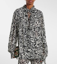Made from lightweight fabric, this eye-catching blouse is finished with an all-over abstract print. Dries Van Noten enhances contemporary silhouettes with slender self-tie strings that have quickly become a brand signature. Product Details - Material: 100% viscose - Care instructions: machine wash at 30 degrees - Made in Tunisia - Color: black - Designer color name: Black - Item color: black, white - Closure: self-ties - Item number: P01126828 Size & Fit - True to size - For a closer fit, we recommend taking one size down - Semi-sheer - Designed for a loose fit - Non-stretchy fabric - Falls below the hip - The model seen in the picture is 178cm-5'10" and wearing a size XS