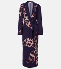 Printed embellished wrap dress