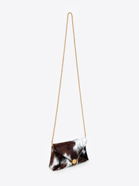 Envelope bag in velvet with tonal cowhide motif, with chain handle and magnetic closure. DETAILS - 82% Viscose, 18% Silk. - Tonal cowhide motif. - Detachable chain shoulder strap. Inner pocket. Front magnetic snap closure. - Comes with dust bag. - Made in Italy. - Ref: 252-011540-2255 SIZE AND FIT 19 cm x 4 cm x 12 cm / 7.5 in x 1.6 in x 4.7 in