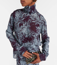 Dries Van Noten's prints are often abstract, overtly maximalist, and always one-of-a-kind. Made from chiffon, this printed turtleneck blouse is a finely crafted example, trimmed with delicate buttons running down the back. Product Details - Material: 100% viscose - Care instructions: dry clean - Made in Hungary - Designer color name: Burgundy - Item color: blue, purple - Collar: turtleneck - Closure: buttoned back - Cuff: buttoned - Hem: rounded - Item number: P01106635 Size & Fit - True to size - Dropped shoulders - Designed for a loose fit - Non-stretchy fabric - Falls below the hip - The model seen in the picture is 178cm-5'10" and wearing a size FR 36