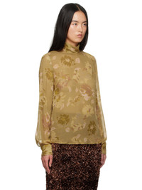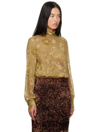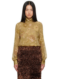 Semi-sheer viscose crepe blouse. Printed floral pattern throughout. · Mock neck · Single-button barrel cuffs · Buttoned keyhole with self-tie drawstring at back collar Supplier color: Ocra