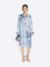 Oversized cocoon shirt dress in cotton voile, with Orchid Petal all-over print. DETAILS - 100% Cotton. - Orchid Petal all-over print. - Oversized fit. Knee length. Cocoon shape. Buttoned cuffs. Front button closure. - Ref: 251-011001-1110 SIZE AND FIT Model is 177 cm / 70 inches and wears size M.
