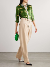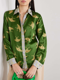 Printed silk-blend satin shirt