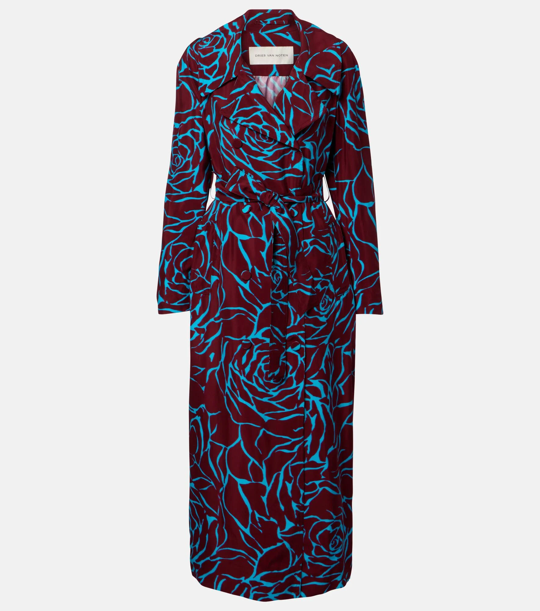 Dries Van Noten's motifs are often abstract, overtly maximalist, and always one-of-a-kind. This coat is made from fluid twill and finished with an all-over print. Product Details - Material: 100% viscose - Care instructions: dry clean - Made in Poland - Color: burgundy - Designer color name: Burgundy - Closure: double-breasted - Collar: Cuban - Belt loops - Detachable belt - Item number: P01126830 Size & Fit - True to size - Loose fit, comes with belt - Non-stretchy fabric - The model seen in the picture is 178cm-5'10" and wearing a size FR 36