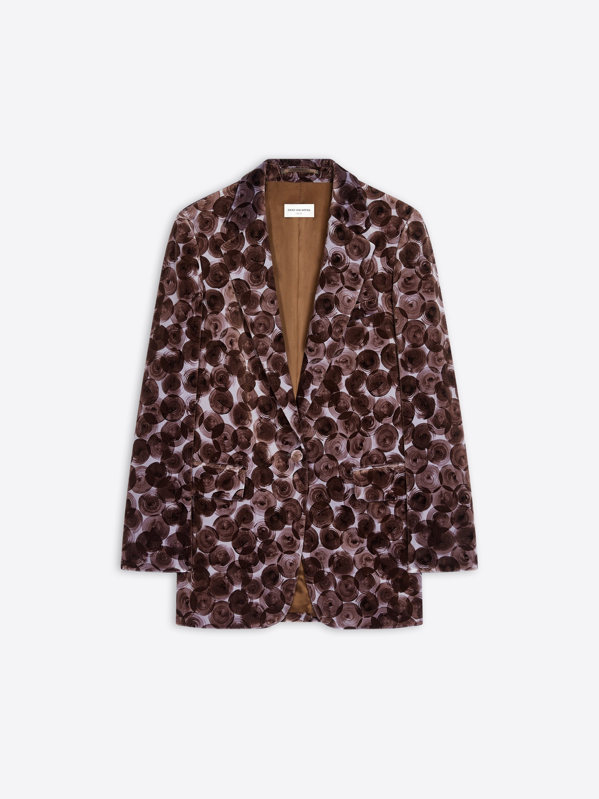 Loose fit single-breasted blazer in cotton velvet, with hand painted polka dot print. DETAILS - 70% Cotton, 28% Viscose, 2% Elastane. - Handpainted polka dot print. SIZE AND FIT SAMPLE SIZE: 38