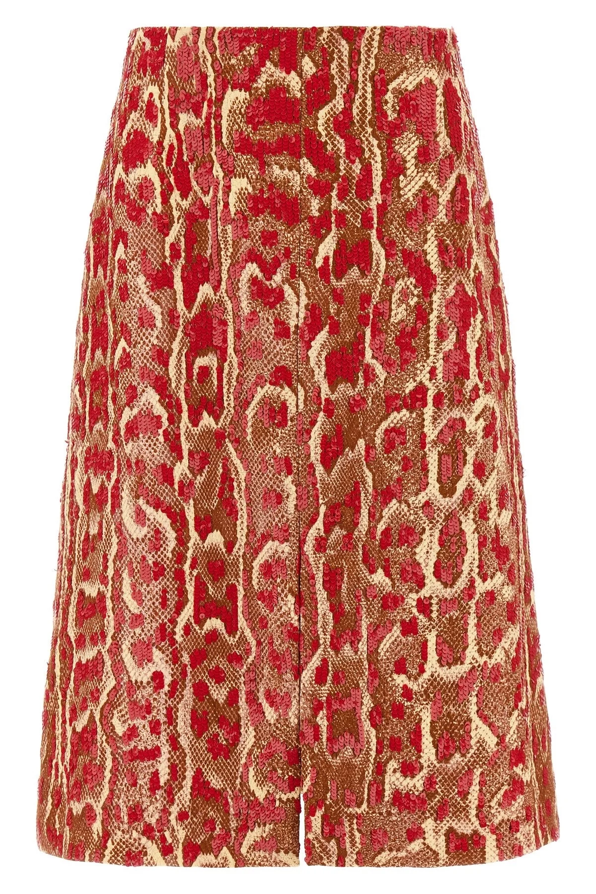 cod. 2510108401417360 Shera Bis' midi skirt in cotton blend and snake print viscose with all-over sequin applique, lining, flared pattern with front split, and back zip closure. Color: Multicolor Size & Fit: true to size fit FRENCH size Composition: 64% hp 36% cotton Made in: India