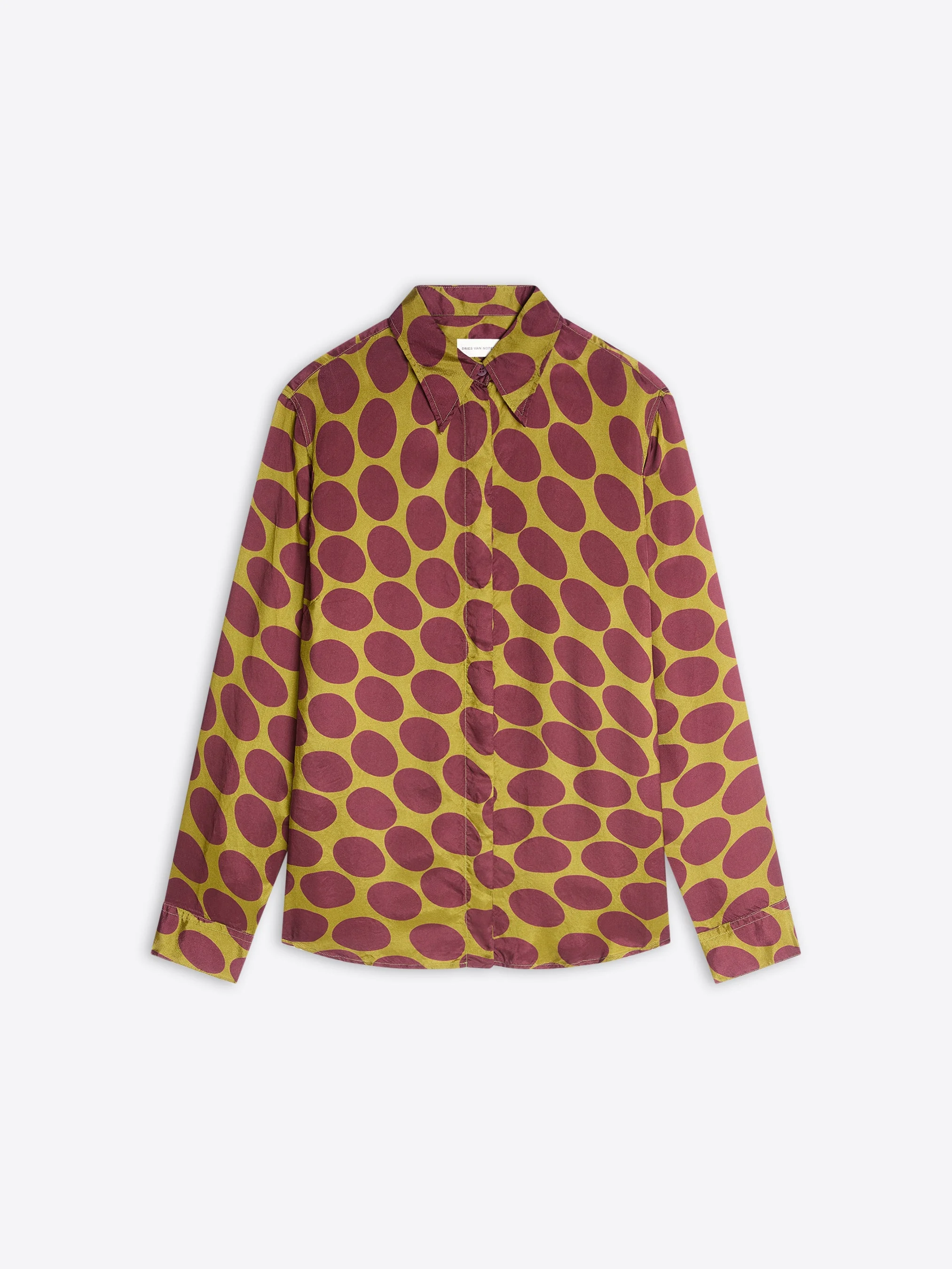 Fitted long-sleeved shirt in viscose twill, with all-over Soft Ellipses print. DETAILS - 100% Viscose. - Soft Ellipses print. - Tight fit. Hidden front button closure. - Ref: 261-010706-3017 SIZE AND FIT Model is 178 cm / 70 inches and wears size 38.