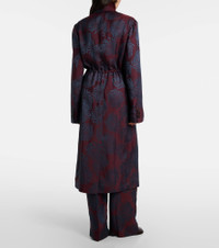 Dries Van Noten delivers unique styles with prints that are often abstract, overtly maximalist, and always one-of-a-kind. This wrap coat features an elasticated self-tie waist and boasts a shiny finish with an intricate pattern. Product Details - Material: 52% acetate, 48% viscose - Care instructions: dry clean - Made in Poland - Designer color name: Burgundy - Item color: burgundy, blue - Lining: 100% viscose - Notched lapel - Pockets: flap pockets - Drawstring waist - Cuff: buttoned - Long vent - Item number: P01092107 Size & Fit - True to size - Loose fit, drawstring waist - Non-stretchy fabric - The model seen in the picture is 178cm-5'10" and wearing a size FR 36