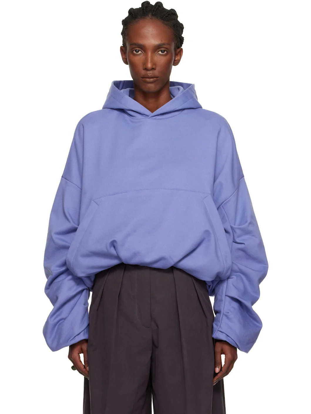 Heavyweight French terry hoodie. · Kangaroo pocket at waist · Pleating and draping at hem and cuffs · Dropped shoulders · Ruching at inner sleeves · Full jersey lining Supplier color: Lavender 100% cotton. Made in Turkey 252358F097003