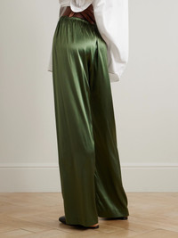 Dries Van Noten's pants will enliven any outfit. Made from silk-blend satin, they feel smooth, light and beautifully flowy. Wear them with heeled boots. Size & Fit - Fits true to size, take your normal size - Mid-rise, cut for a straight-leg fit - Elasticated at the waist for a flexible fit - Lightweight, fluid, non-stretchy fabric - Model is 180cm/ 5'11" and is wearing a FR 36 Model measurements: - Bust: 80cm/ 31.5" - Waist: 65cm/ 25.5" - Hip: 89cm/ 35" Details & Care - Green silk-blend satin - Pull on - 94% silk, 6% elastane - Unlined - Dry clean