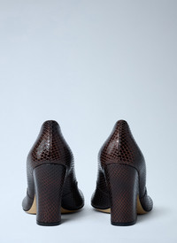 Python-embossed leather wedge pumps with almond toe. - Almond toe design - Python-embossed leather upper - Curved wedge heel - 100% Leather - Color: Dark Brown - Code: 252-011732-350-704