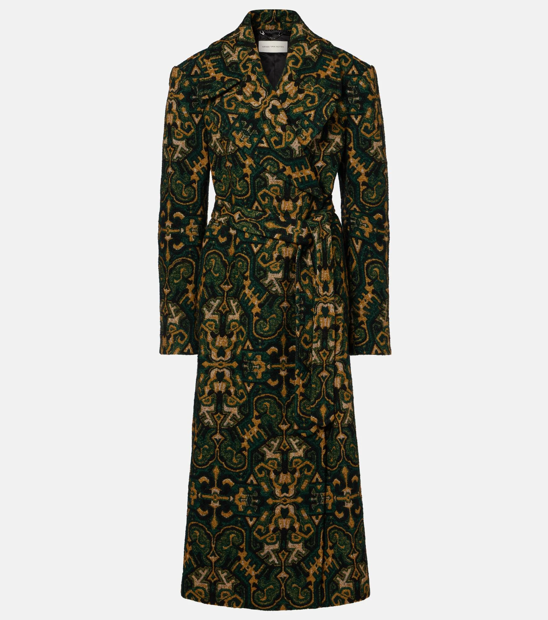 Elevate your wardrobe with standout pieces like the Rafaella long coat from Dries Van Noten. This design features an all-over vibrant print and is detailed with a self-tie belt, side pockets, and a concealed front closure. Product Details - Material: 43% acrylic, 30% polyester, 17% polyamide, 10% wool - Care instructions: dry clean - Made in Poland - Designer color name: Bottle - Item color: multicolor - Lining: 55% cotton, 45% cupro - Closure: concealed buttoned front - Pockets: side slit pockets, internal pocket - Cloverleaf lapel - Shoulder pads - Self-tie belt - Long vent - Item number: P01092104 Size & Fit - Fits large to size - we recommend trying one size smaller - Shoulder pad inserts - Loose fit, comes with belt - Non-stretchy fabric - The model seen in the picture is 178cm-5'10" and wearing a size FR 34