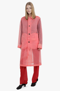 - Fabrication: 69% Polyamide, 31% Polyester - Semi sheer construction - Button up - Side pockets - Lined - Classic collar Size and Fit Sophie: Model is 189cm/6’02” and is wearing a size S Model Measurements: Bust: 76cm, Waist: 61cm, Hips 87.5cm Fits true to size Measurements Size S: Bust 122cm, Waist 112cm, Hips 112cm, Length 111cm Size M: Bust 122cm, Waist 122cm, Hips 122cm, Length 111cm
