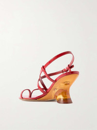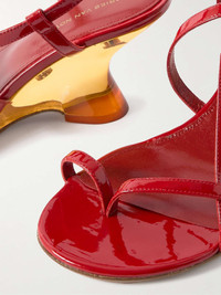 EDITORS'NOTES Dries Van Noten's sandals are defined by clear, sculptural wedge heels that reveal the two pieces of hardware holding the shoes together. They're made from red patent-leather and have slim straps. SIZE & FIT - Fits true to size, take your normal size - Italian sizing DETAILS & CARE - Heel measures approximately 75mm/ 3 inches - Red patent-leather (Calf) - Buckle-fastening ankle strap