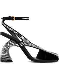 Black Embellished Leather Heeled Sandals