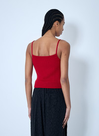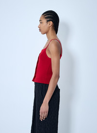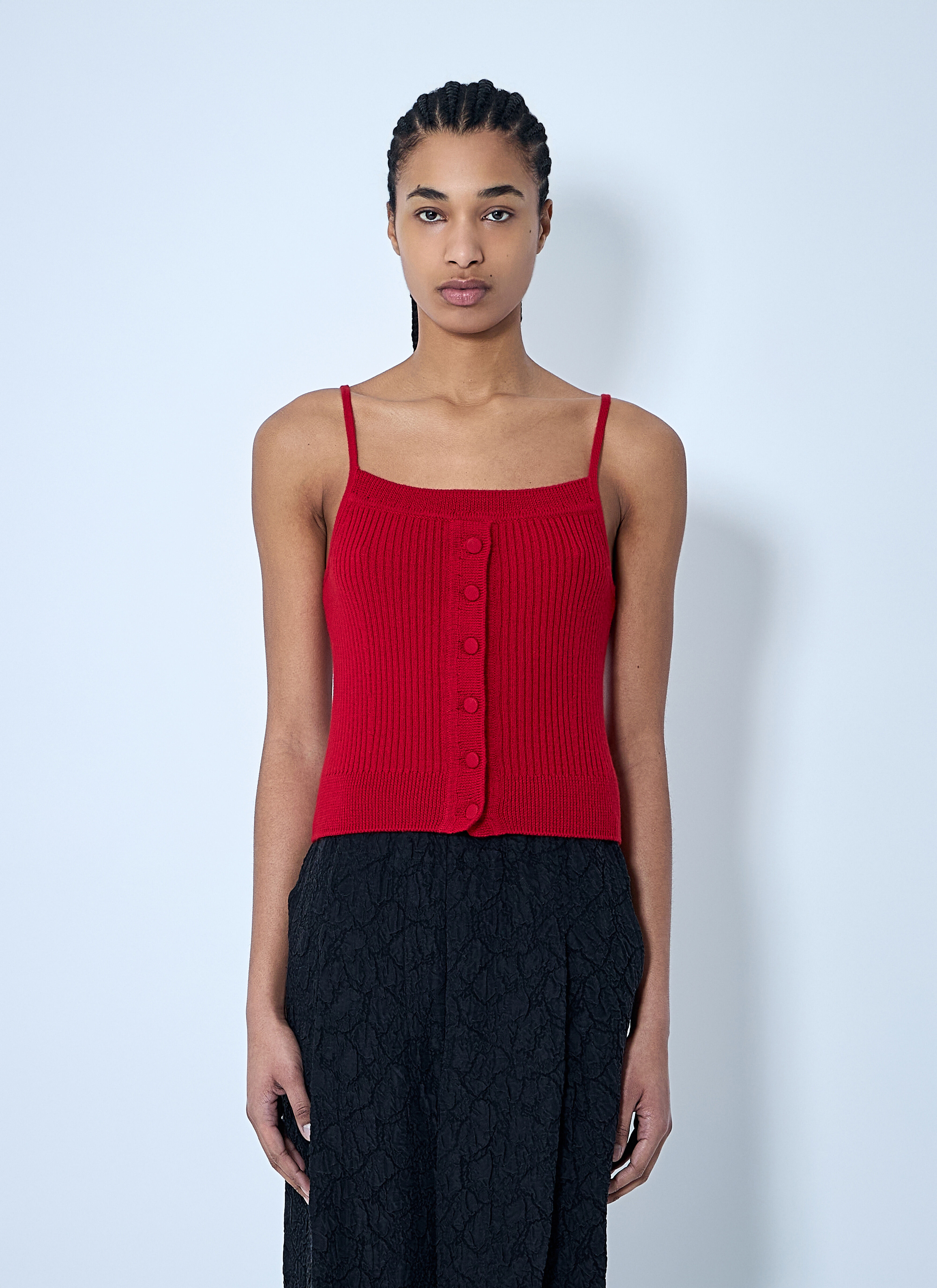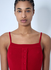 Button-down tank top in rib knit. - Square neck - Front button fastening - Spaghetti straps - Ribbed - 50% Wool, 50% Polyester. Hand wash - Color: Red - Code: 011209 1713 352