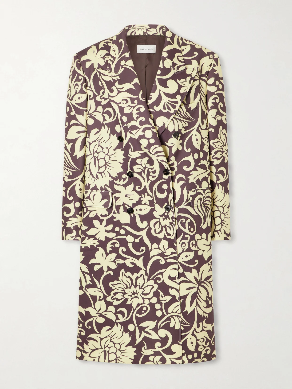 As the name suggests, blooms define Dries Van Noten's 'Rosea' coat. Made from jacquard, it's tailored in a double-breasted silhouette and cut for an oversized fit. Take cues from the SS26 runway and style yours with shimmery sandals.