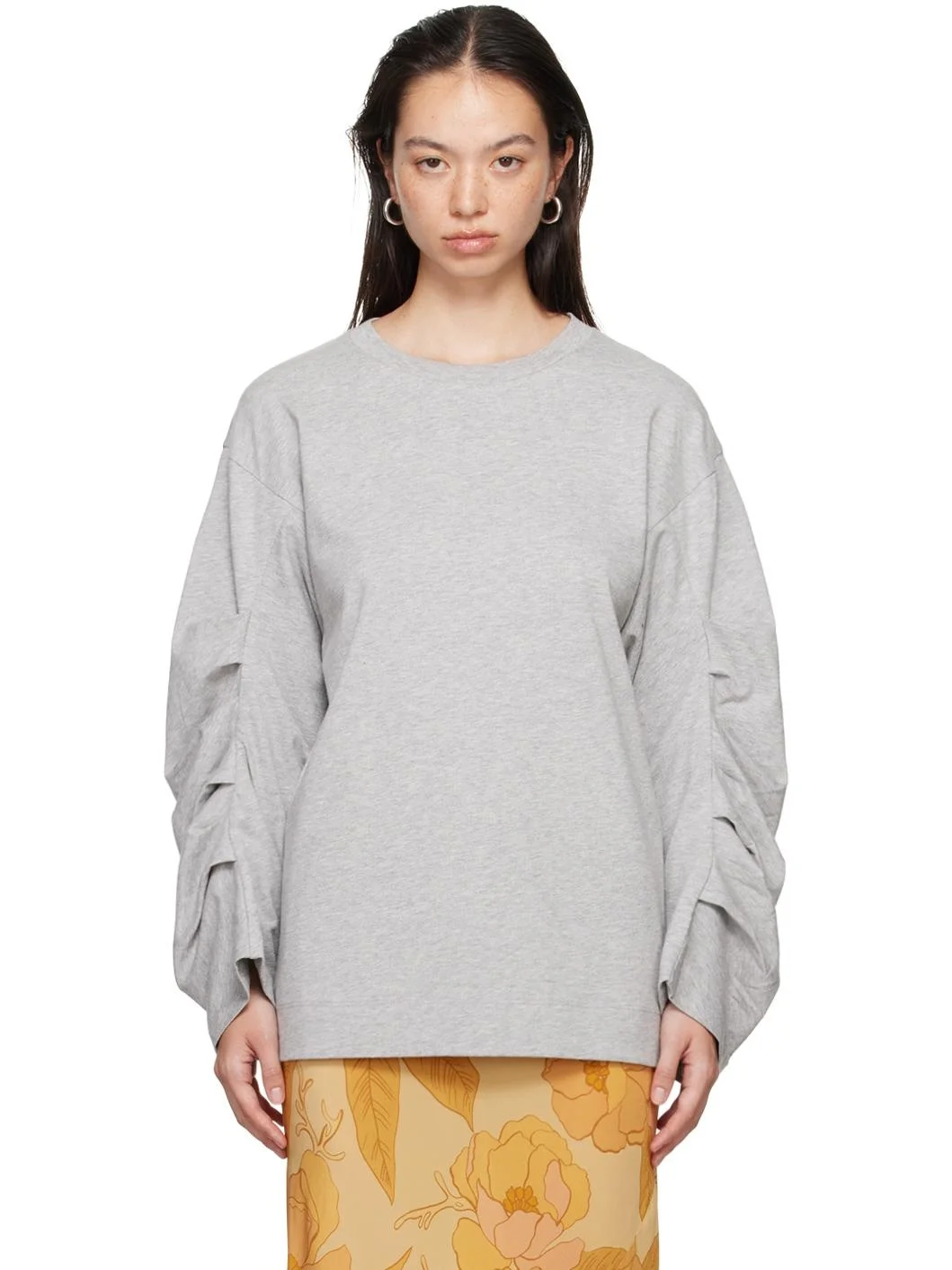 Heavyweight cotton jersey T-shirt. · Rib knit crewneck · Dropped shoulders · Pleats and draping at sleeves Supplier color: Grey melange