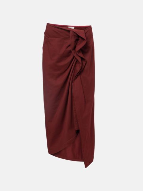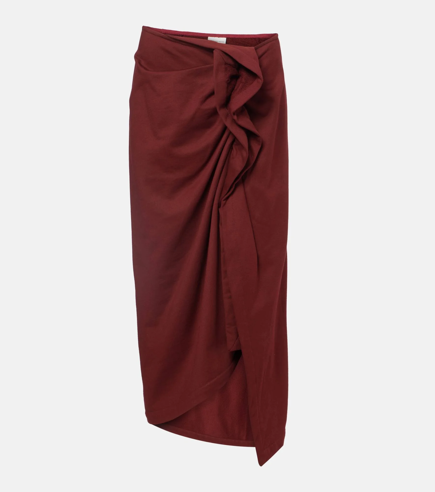 This midi skirt from Dries Van Noten captures the brand’s modern, expressive aesthetic. Versatile enough for the office, dinner, and beyond, the style is detailed with a gathered ruffle, soft draping, and a concealed zip closure. Product Details - Material: 100% cotton - Care instructions: machine wash at 30 degrees - Made in Turkey - Designer color name: Ruby - Item color: burgundy - Closure: concealed zipped side - Item number: P01092188 Size & Fit - True to size - Slightly stretchy fabric - The model seen in the picture is 178cm-5'10" and wearing a size FR 36