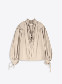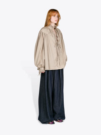 Loose fit shirt with ruffle details in cotton poplin. DETAILS - 100% Cotton Poplin. - Ruffle details. - Loose fit. Calf length. Gathered neckline. Drawstring cuffs. - Ref: 261-130716-3314 SIZE AND FIT Model is 178 cm / 70 inches and wears size M.