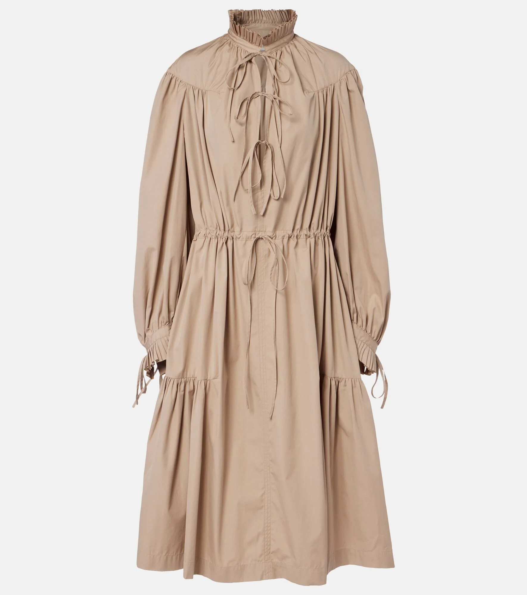 Effortless yet elegant, this shirt dress from Dries Van Noten deserves a spot in your everyday rotation. Made from lightweight cotton, the style features subtle ruffles, a drawstring waistband, and self-tie detailing at the front. Product Details - Material: 100% cotton - Care instructions: machine wash at 30 degrees - Made in Tunisia - Color: beige - Designer color name: Sand - Item color: beige - Closure: self-ties - Drawstring waist - Cuff: ruffled - Sleeves: long-sleeved - Item number: P01126879 Size & Fit - Fits large to size - we recommend trying one size smaller - Loose fit, drawstring waist - Non-stretchy fabric - The model seen in the picture is 178cm-5'10" and wearing a size XS