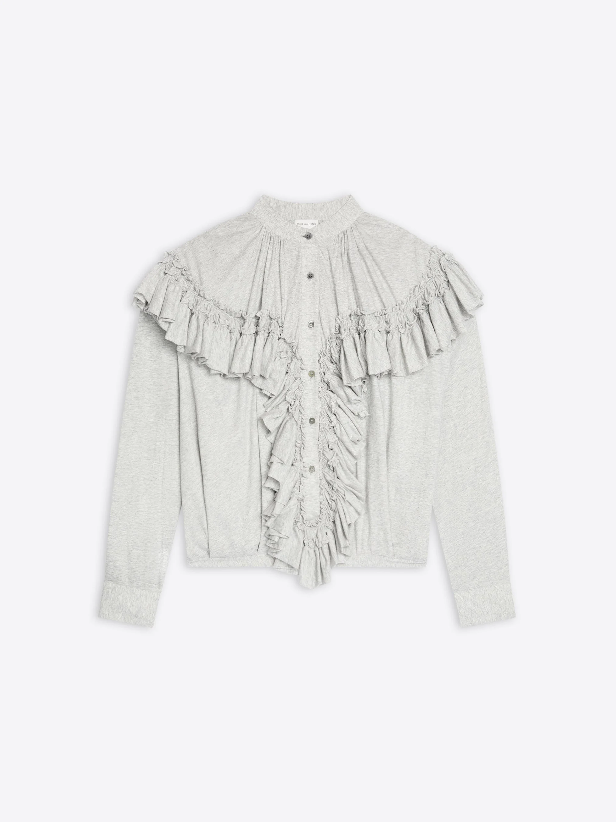 Loose fit blouse in lightweight cotton jersey, with standing collar and ruffle details. DETAILS - 100% Cotton. - Ruffle detail. - Loose fit. Long sleeves. Standing collar. Front button closure. - Ref: 261-011146-3606 SIZE AND FIT Model is 178 cm / 70 inches and wears size S.