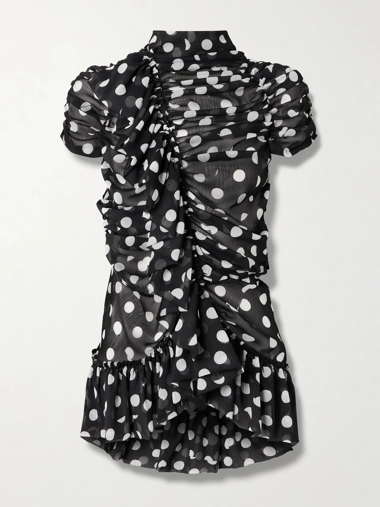 Dries Van Noten has a distinctive eye for texture, contrast and detail-driven design. This blouse is composed of folded and ruffled crepon, with a ruched seam through the center for shape. Take cues from the runway and pair it with contrasting polka-dots.